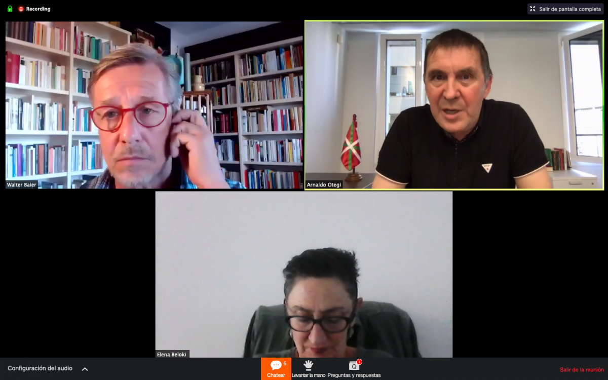 Serie honetako laugarren elkarrizketatua Arnaldo Otegi izan da; Walter Baier, ekonomilariak eta Transform-eko koordinatzaile politikoak eta Elena Belokik Iratzar Fundazioko ordezkariarekin batera parte hartu dute, moderatzaile bezala.