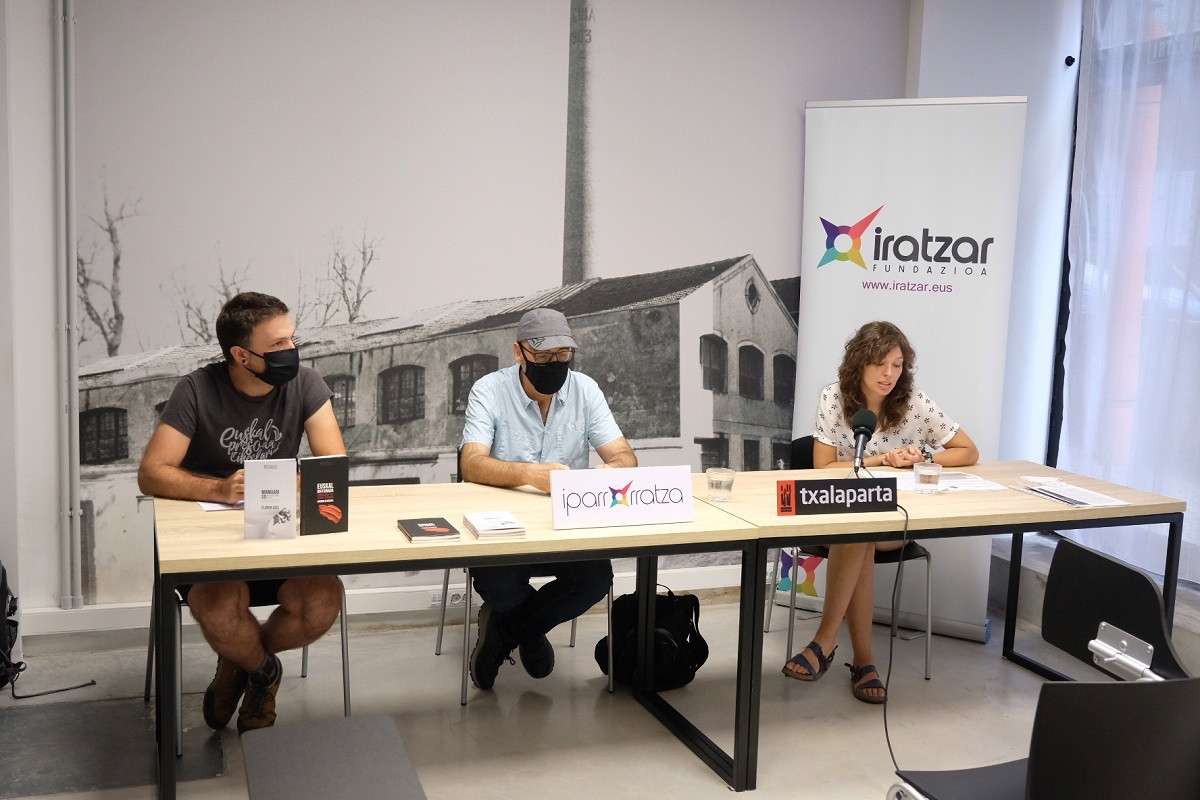 Txalaparta argitaletxeko editoreak, Garazi Arrulak eta Iratzar Fundazioko zuzendariak, Floren Aoizek Iparrorratza bilduma aurkeztu dute, gaur, goizean, Donostiako Teila Fabrikan.