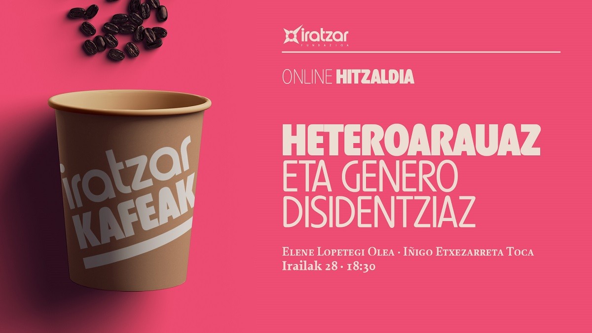 Iratzar fundazioak “Heteroarauaz eta genero disidentziaz” lemapean 10.on-line solasaldia antolatu du irailaren 28rako; bertan, Elene Lopetegi eta Iñigo Etxezarreta, generoarekin eta sexuarekin lotutako rol estruktural eta sozial ezberdinak argitzen saiatuko dira.
